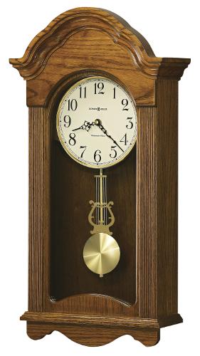 - Finished in Legacy Oak on select hardwoods and veneers, this wall clock features a scalloped arched bonnet and reeded columns.