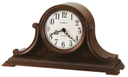 - This tambour mantel clock is rich in details. A beaded dentil molding surrounds the base, accenting the carved side scrolls and burl veneered front panel.